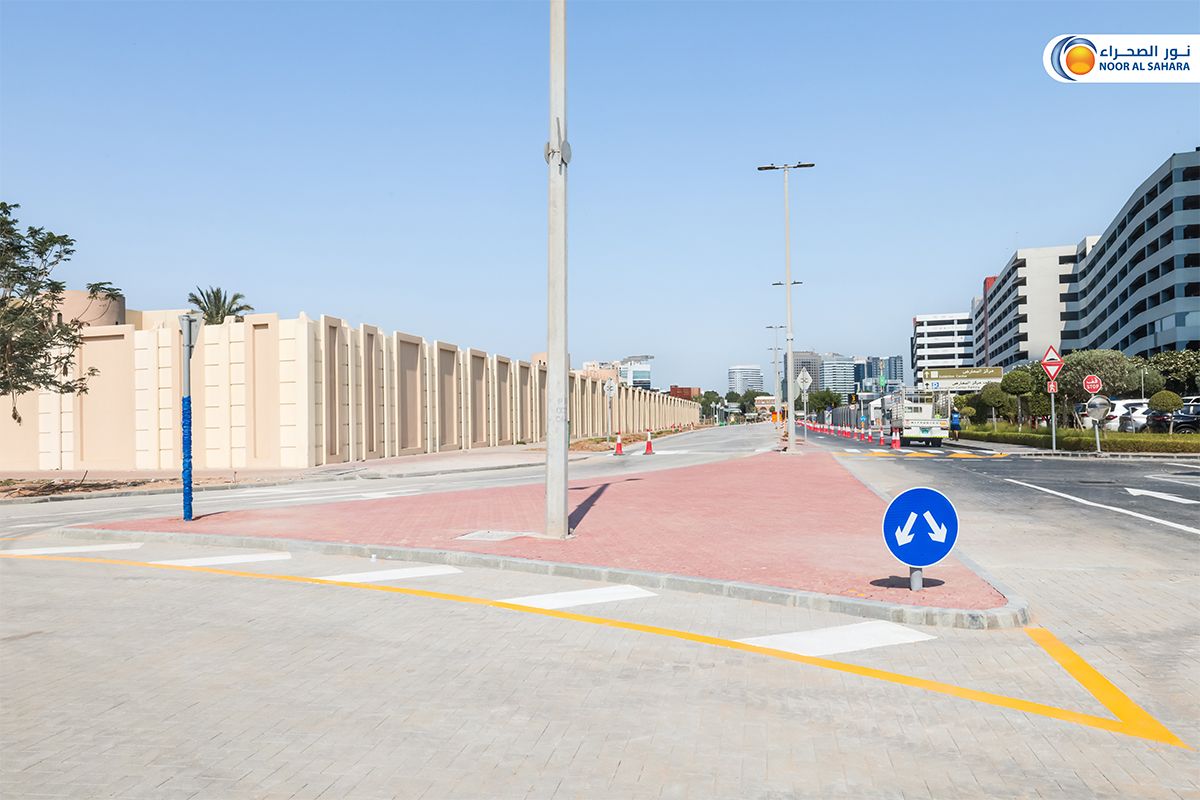 Noor Al Sahara General Contracting Sole Proprietorship is pleased to announce the successful completion of road marking and traffic sign installation works near the Abu Dhabi National Exhibition Center (ADNEC), a key landmark in Abu Dhabi. This achievement is part of a comprehensive infrastructure development initiative valued at AED 45 million, undertaken in collaboration with the Abu Dhabi City Municipality.